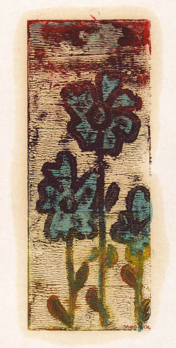 Cherries in blue, 2003, monotype mixed technique on paper