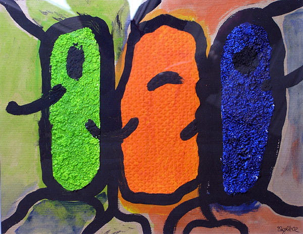 Three Microbes, 2002, mixed technique on cardboard